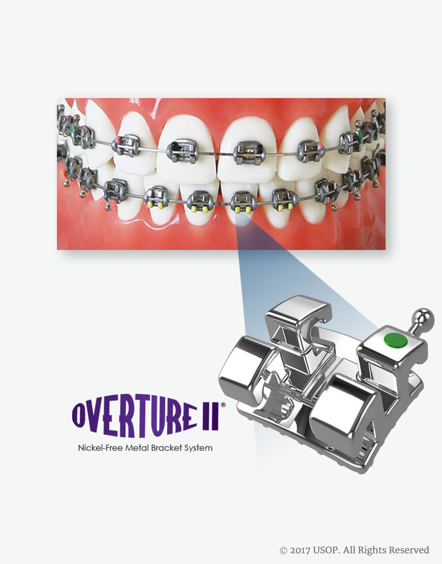 The Overture II® Nickel Lite Bracket System was developed for patients sensitive to nickel. However, the Overture II® does not compromise on functionality. It features a compound-contoured, torque-in-base design that was created from a single metal injection mold (MIM). The rhomboid design parallels tooth angulation and level slot line-up. Additionally, it features precise in/out alignment. The Micro-Etched Grip-Lok® mesh base design greatly improves the bond strength and significantly reduces bond failures. You can purchase brackets individually, or in full sets.