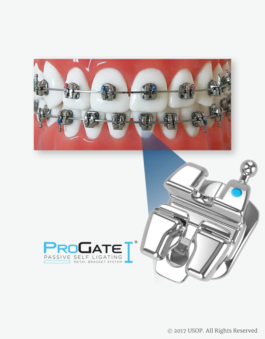 ProGate I® Passive Self Ligating Metal Bracket System provides low friction during treatment. The archwire slot features a “V” channel for positioning and visual reference. The innovative flat Clip provides full mesial distal coverage for better strength to keep the archwire in a fixed position. ProGate I – Self Ligating Metal Bracket System will bring you better clinical management and accelerate patient’s treatment. You can purchase brackets individually, or in full sets.